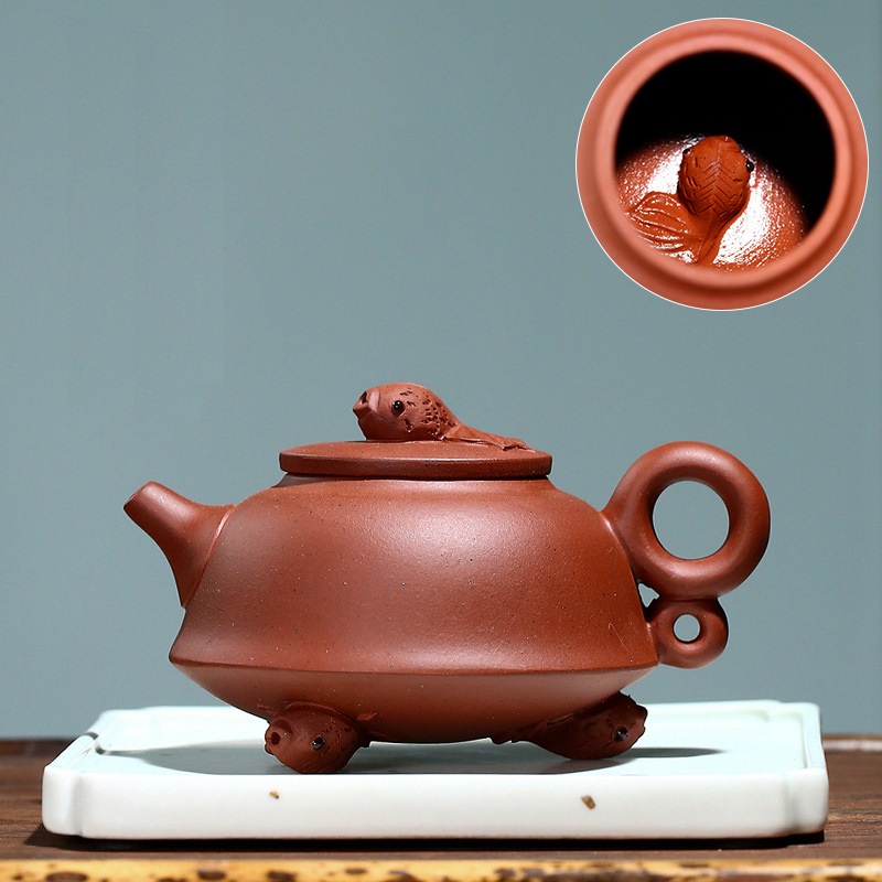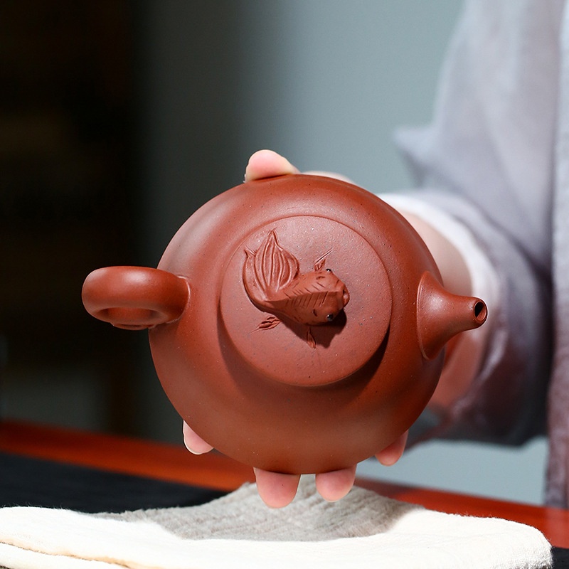 Ấm Tử Sa Nghi Hưng Ngư Lạc 230 ml (Thanh Thủy Nê)+ Ấm đẹp, chất đất đanh, mầu ấm tươi, vòi nước dòng chảy tốt.