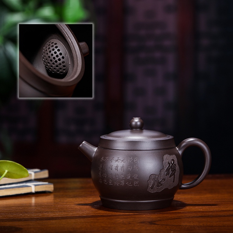 Ấm Tử Sa Nghi Hưng Tâm Thiền 200 ml (Hắc Nê, Lọc Tổ Ong)