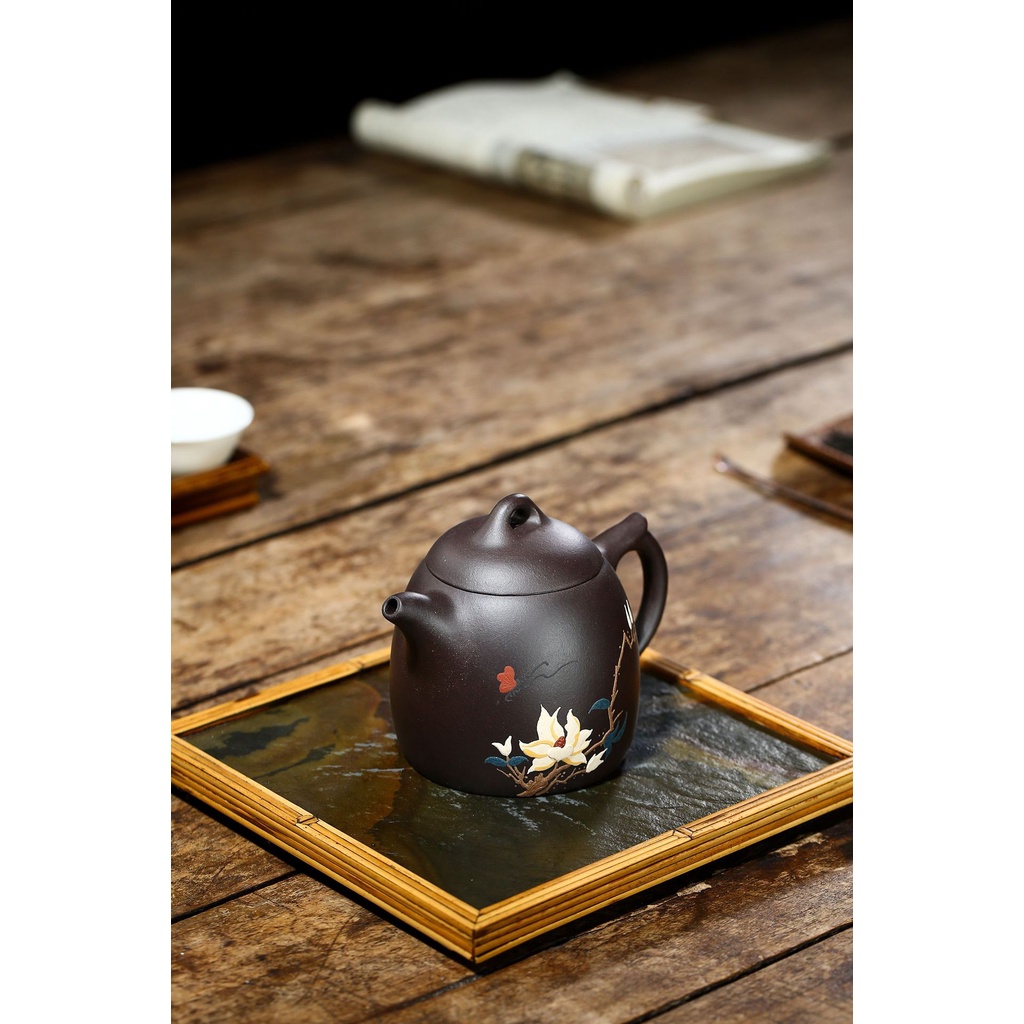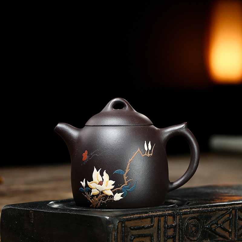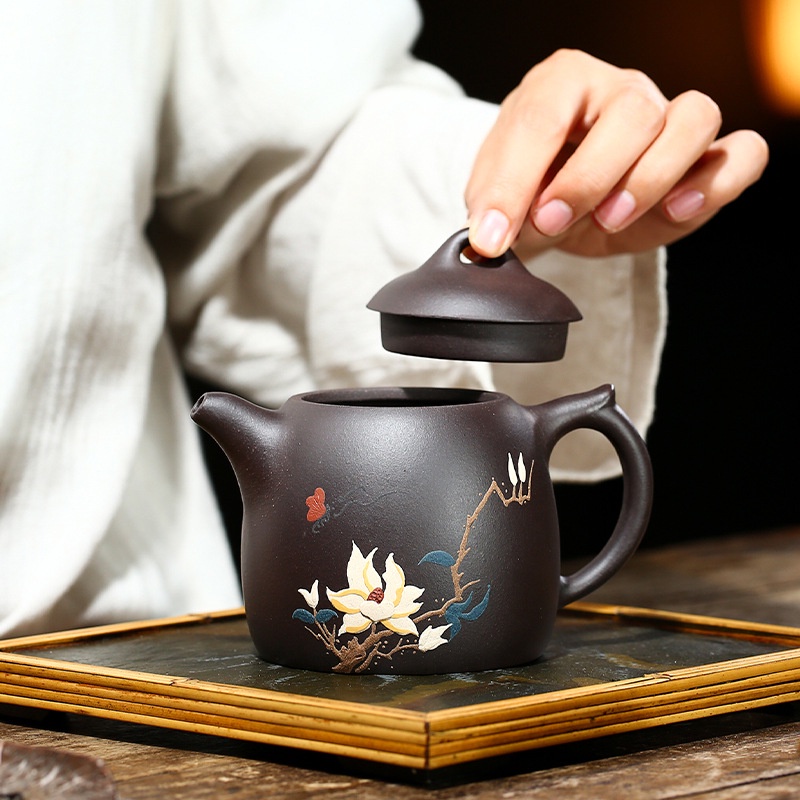 Ấm Tử Sa Nghi Hưng Tần Quyền Lan Hoa 380 ml (Hắc Nê)