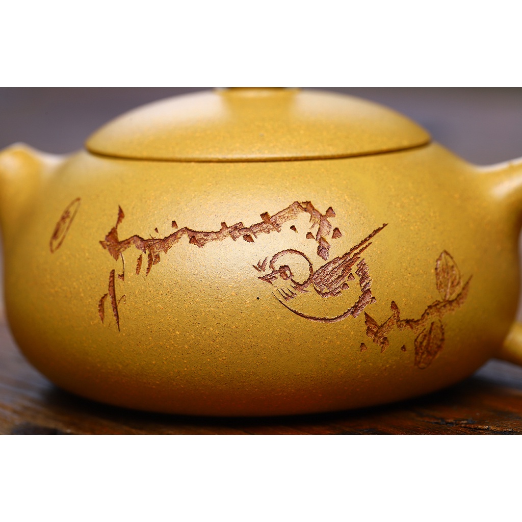 + Hoa văn 02 mặt ấm: Trơn bóng khắc chìm họa tiết chim Họa my