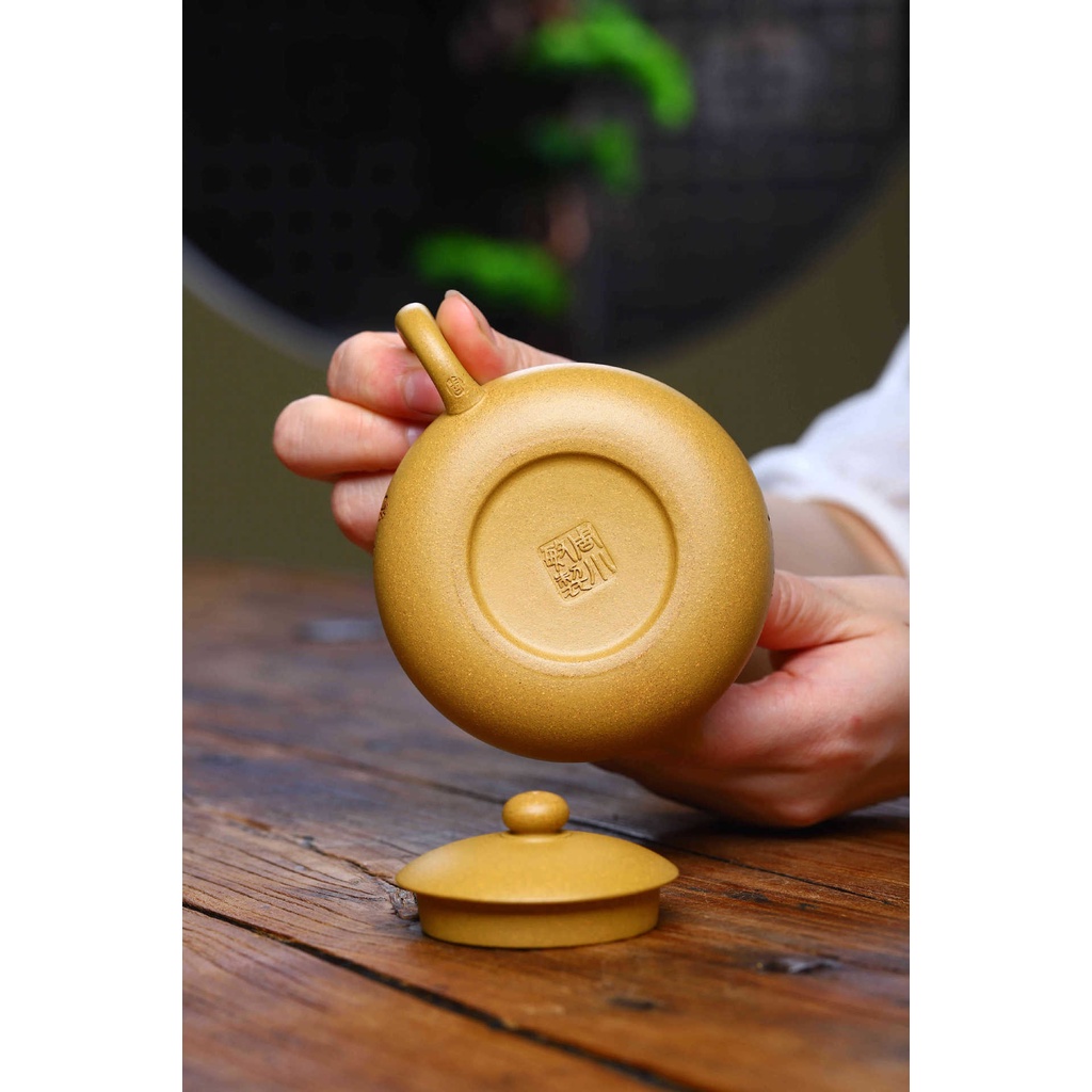 Ấm Tử Sa Nghi Hưng Đức Chung 225 ml (Hoàng Kim Đoạn Nê)+ Ấm đẹp, chất đất đanh, mầu ấm tươi, vòi nước dòng chảy tốt.