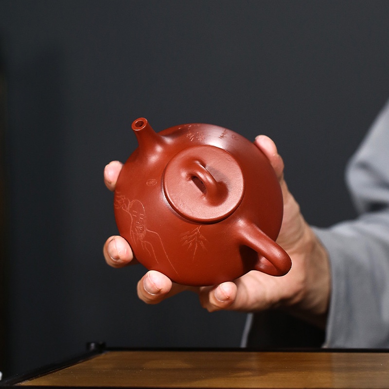 Ấm Tử Sa Nghi Hưng Thạch Biều Lão Tử 180 ml (Đại Hồng Nê)+ Ấm đẹp, chất đất đanh, mầu ấm tươi, vòi nước dòng chảy tốt.
