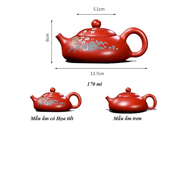 + Kích thước ấm: Tổng chiều dài: 13.7 cm * chiều cao 6.0 cm * Rộng nắp ấm 5.1 cm