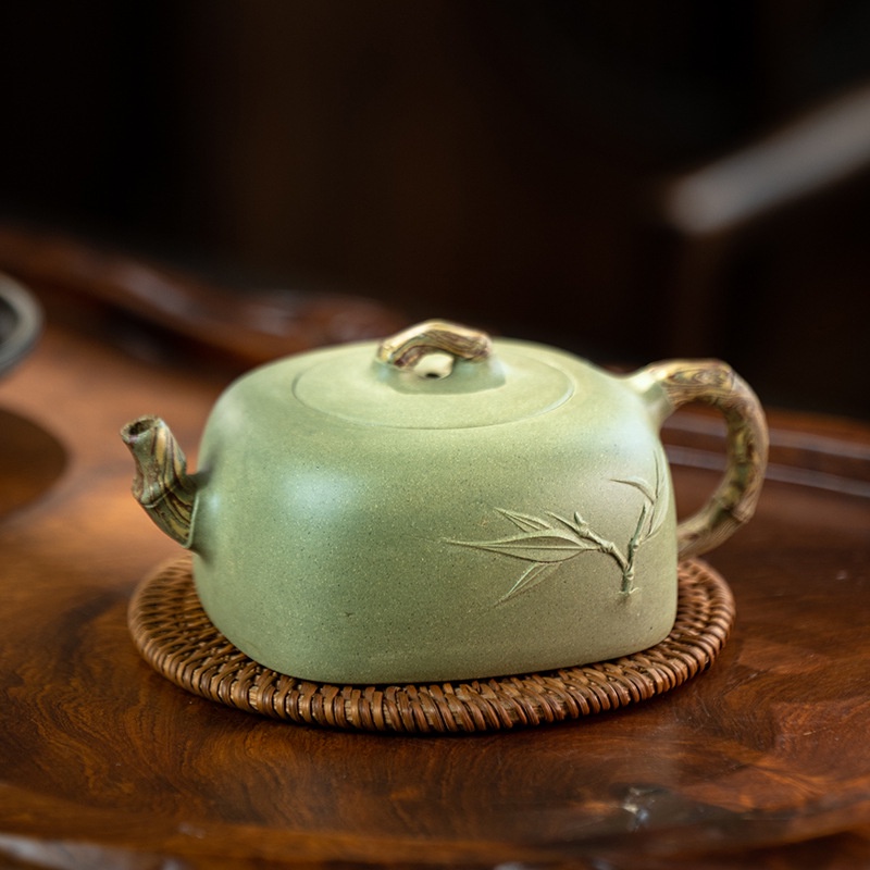 Ấm Tử Sa Nghi Hưng Trúc Tường 260 ml (Đậu Thanh Nê)+ Ấm đẹp, chất đất đanh, mầu ấm tươi, vòi nước dòng chảy tốt.