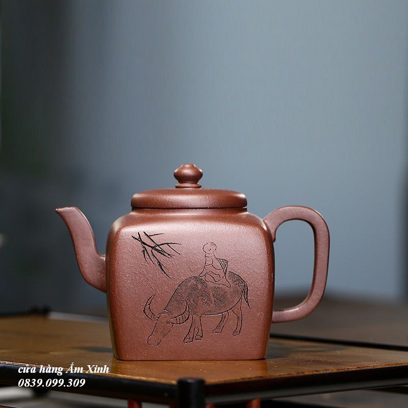 Ấm Tử Sa Nghi Hưng Tứ Phương Ngưu Chuyển Càn Khôn 280 ml (Tử Nê)+ Ấm đẹp, chất đất đanh, mầu ấm tươi y như hình ảnh, vòi nước dòng chảy tốt.