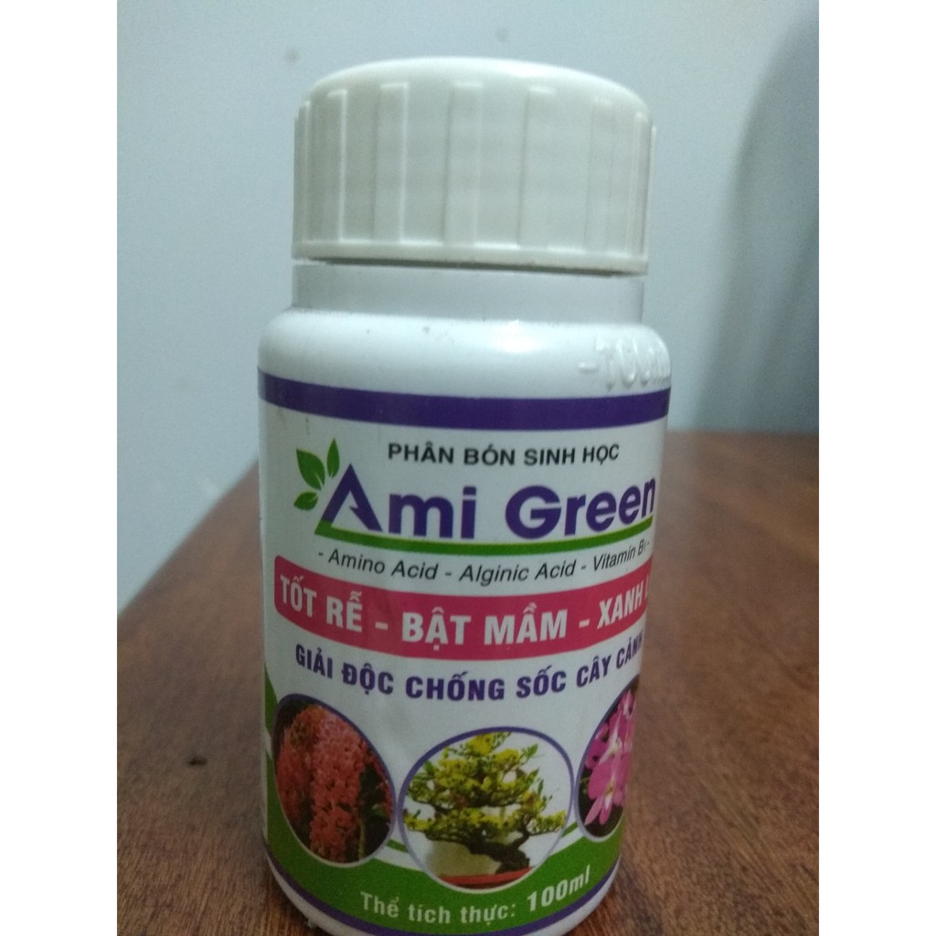 Phân bón sinh học Ami green, tốt rể- bật mầm- xanh lá, chai 100 mlThành phần :