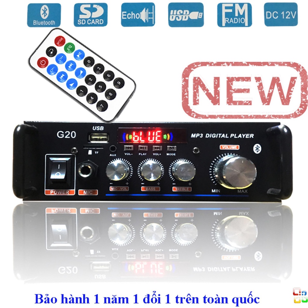 - Ampli kết nối không dây bluetooth 4.0 thông minh, điều khiển từ xa nhiều chức năng, sử dụng thuận tiện, gọn nhẹ hơn.