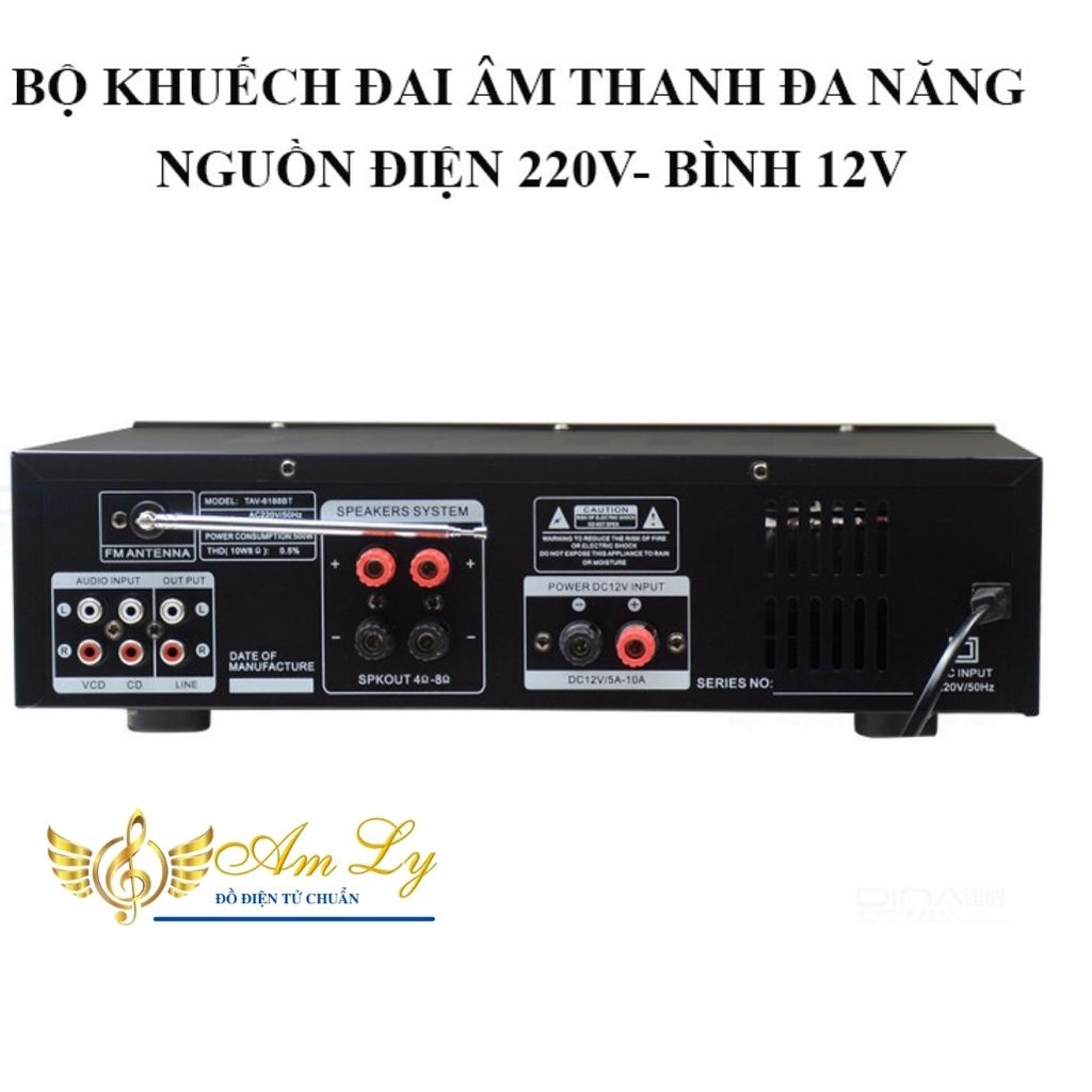 - Sử dụng nguồn 220v và 12VDC nên âm li có thể lắp cho xe ô tô