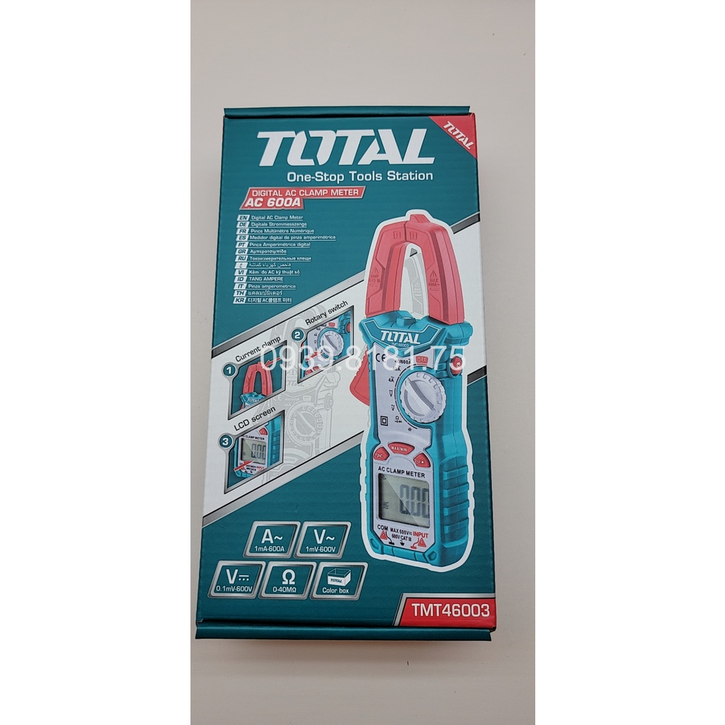 Nhà cửa & Đời sống > Dụng cụ & Thiết bị tiện ích > Dụng cụ > Dụng cụ đo lường || Ampe kìm cao cấp Total TMT46003 Đồng hồ kẹp đo dòng vạn năng AC DC Điện trởCòn hàng