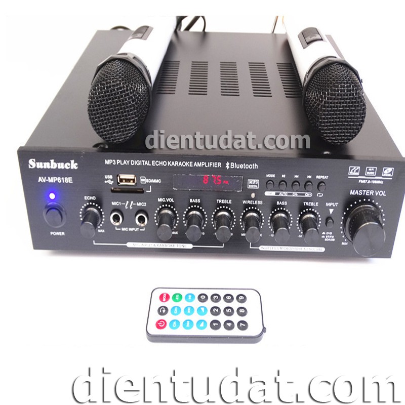 Bộ Ampli Karaoke Bluetooth 220VAC 2*100W Kèm 2 Micro Không Dây - DE618E