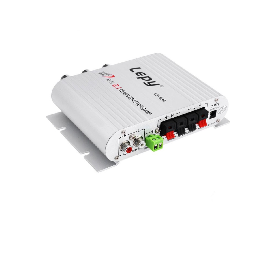 Ampli mini công suất Lepy LP-838/ST-83812V Hi-Fi 2.1 là bộ khuếch đại âm thanh nhỏ gọn dành cho xe hơi, xe máy hay phòng nghe nhạc gia đình.TÍNH NĂNG AMPLI MINI LEPY LP-838/ST-838