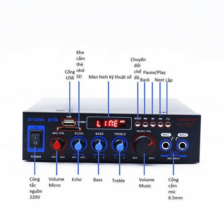 Ampli Mini Karaoke Bluetooth Cao Cấp BT-309AMô tả: