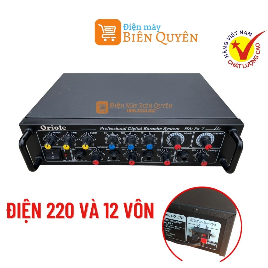 Thiết Bị Âm Thanh > Amply và đầu chỉnh âm || Ampli mini Karaoke công suất lớn 250W Oriole PA7 chính hãng, 4 sò lớn, 4 đường mic, nguồn 220V-12V, (tặng dây av 40K)Còn hàng