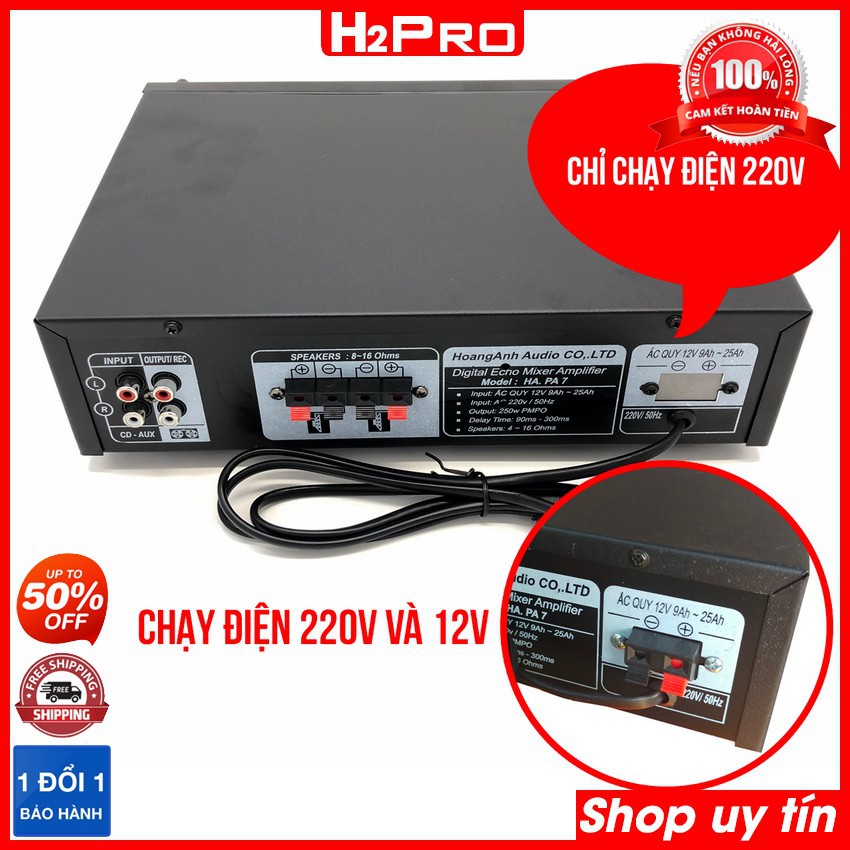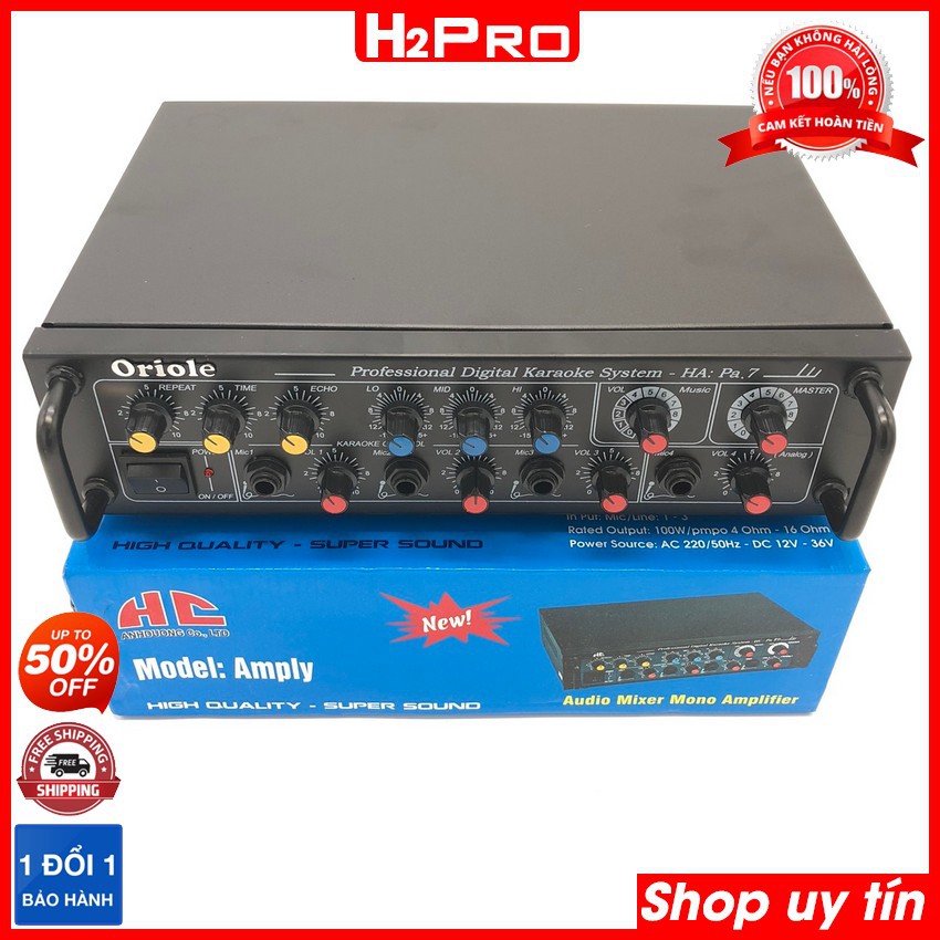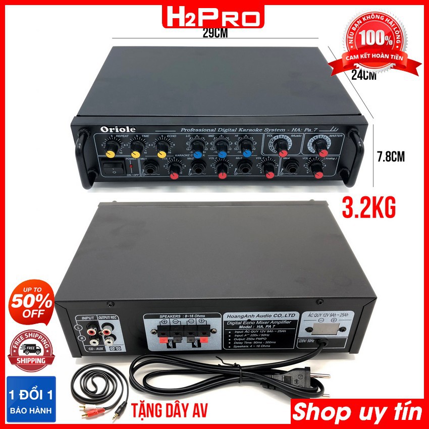 Giới thiệu Âm ly mini, amply karaoke Oriole PA7 250W, 4 sò lớn, 4 đường mic, amply mini 12v-220v (tặng dây av) - H2pro Tech