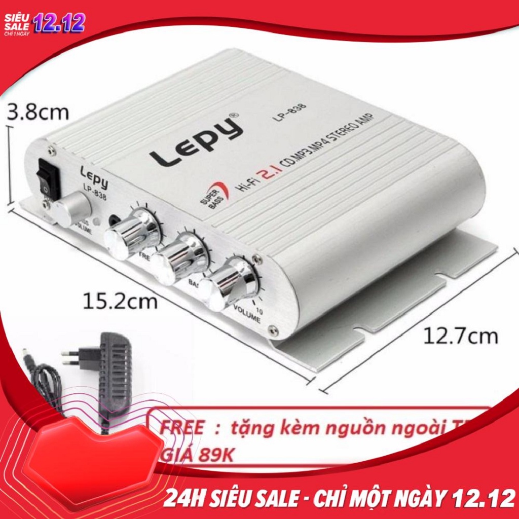 Ampli Mini Lepy Lp-838 Hi-Fi 2.1 bộ khuếch đại âm thanh nguồn 12V tương tích với nhiều loại loa