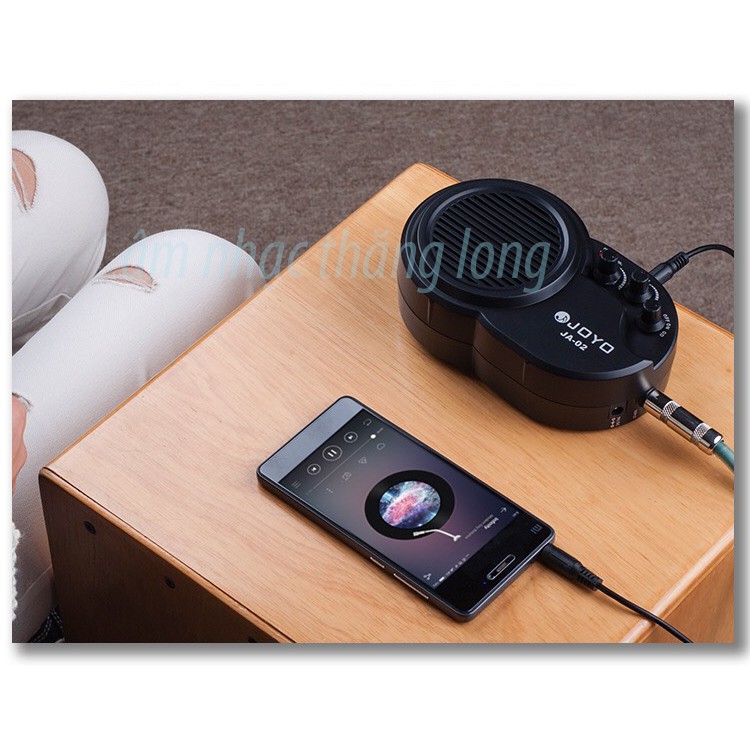 - Ampli Guitar Mini Joyo JA-02 còn hỗ trợ phát nhạc từ điện thoại, máy tính sang loa qua dây tín hiệu cắm trực tiếp, hỗ trợ cổng cắm tai nghe 3.5mm, nhờ đó các bạn có thể vừa bật nhạc đệm, vừa chơi nhạc cụ và phát ra ampli tùy thích