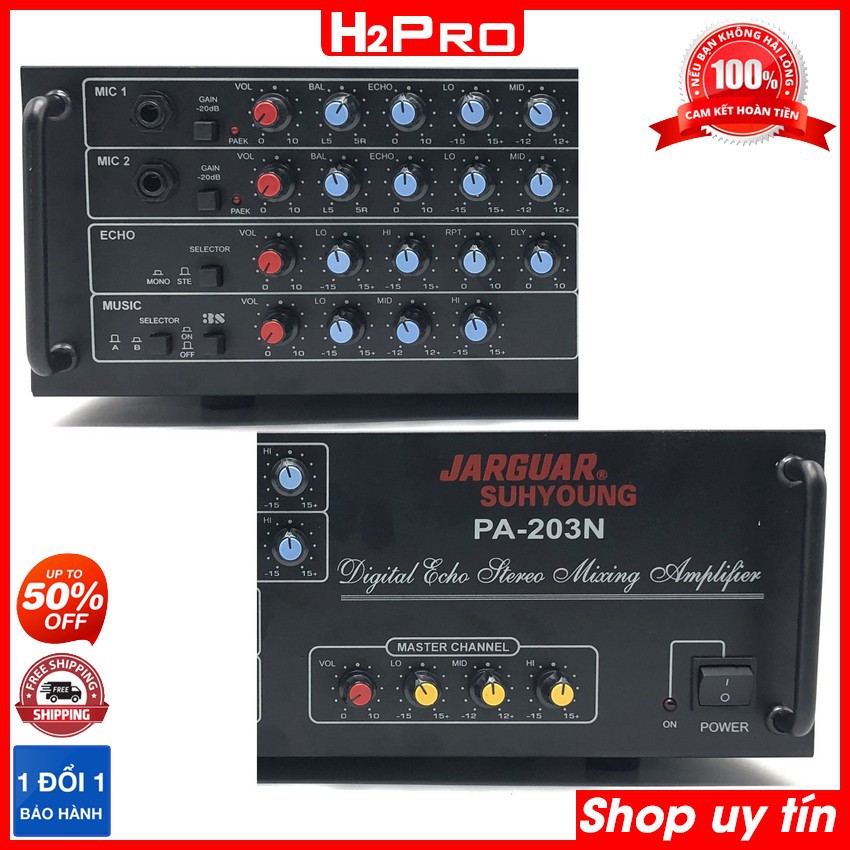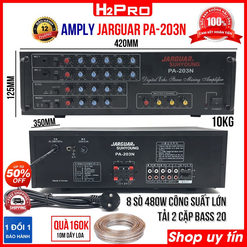 Amply Karaoke, amply Jarguar 203N 8 sò 480W công suất lớn, âm thanh hay, chơi cặp bass 20-25 (tặng 10m dây)-H2pro Tech