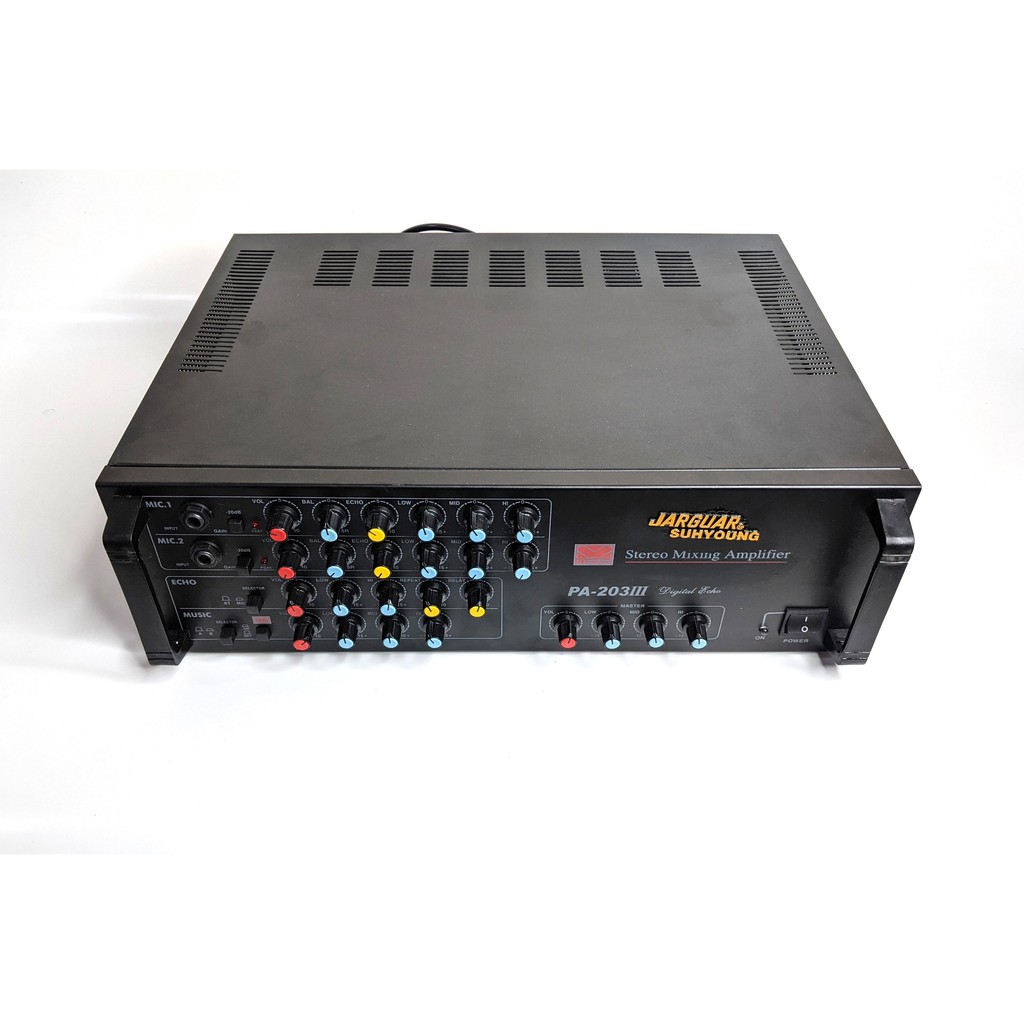 Amply Karaoke Jarguar Suhyoung PA-203III hay còn gọi với tên đầy đủ là Amply Jarguar Suhyoung PA 203III là một trong 5 dòng sản phẩm thế hệ Jarguar 203 của hãng sản xuất Amply Jarguar chính hãng dành cho hệ thống âm thanh dàn karaoke gia đình cao cấp sang trọng.