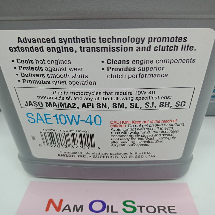 Thông số kỹ thuật của nhớt Amsoil 4T 10w-40 Performance