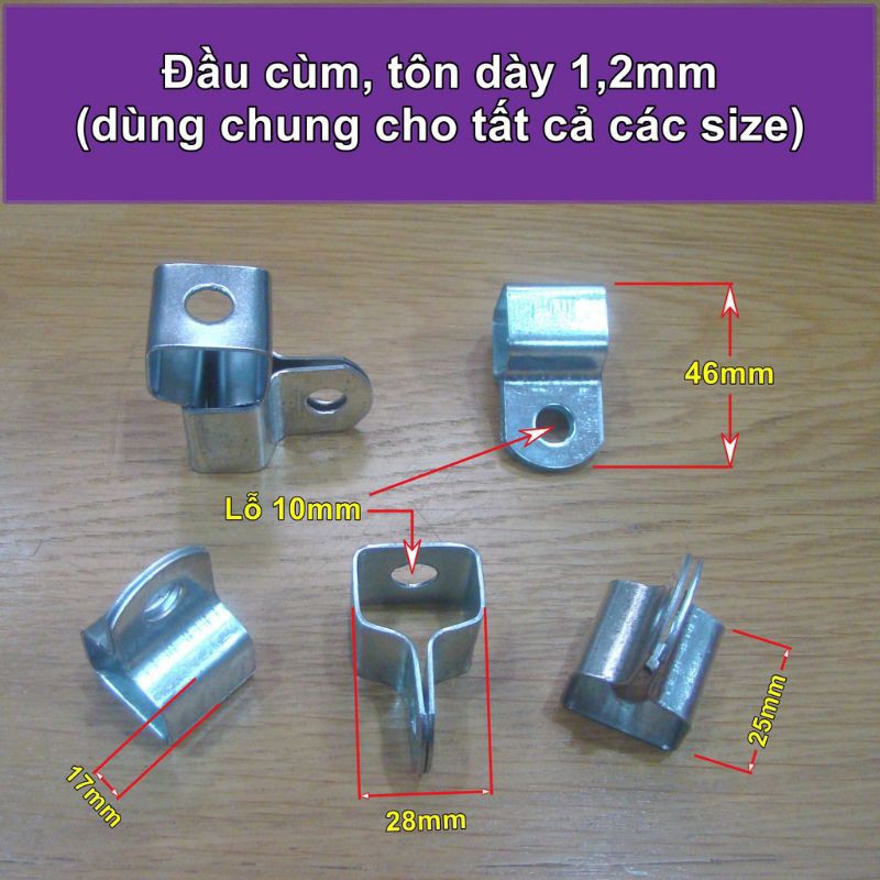 🍋- Kích thước cùm : thường có đường từ D21, D27, D34, D42mm...