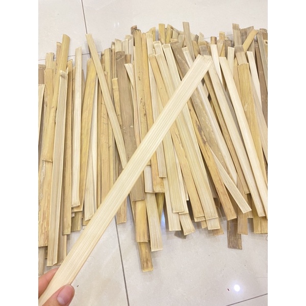 Tre sau khi được loại bỏ hết mấu, và lòng tre. Shop đã phơi khô để đảm bao tre k bị mốc mối mọt. Sau đó mới vót tay thủ công toàn bộ để đũa lấy bánh đáp ứng được tiêu chí. Mềm, mỏng, mượt đũa có độ đàn hồi k quá yếu, không quá cứng để các bạn có thể lấy bánh 1 cách dễ dàng.