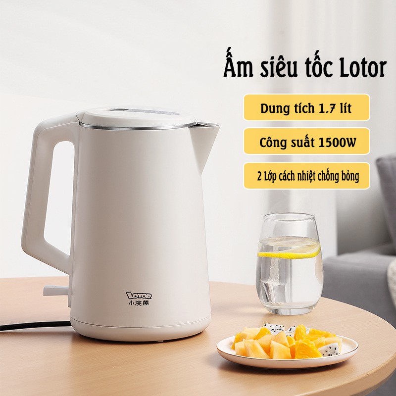 [AN TOÀN Chống bỏng - Chống tràn] Ấm siêu tốc LOTOR, 1.7 lít, 02 lớp chống nhiệt, công suất 1500W