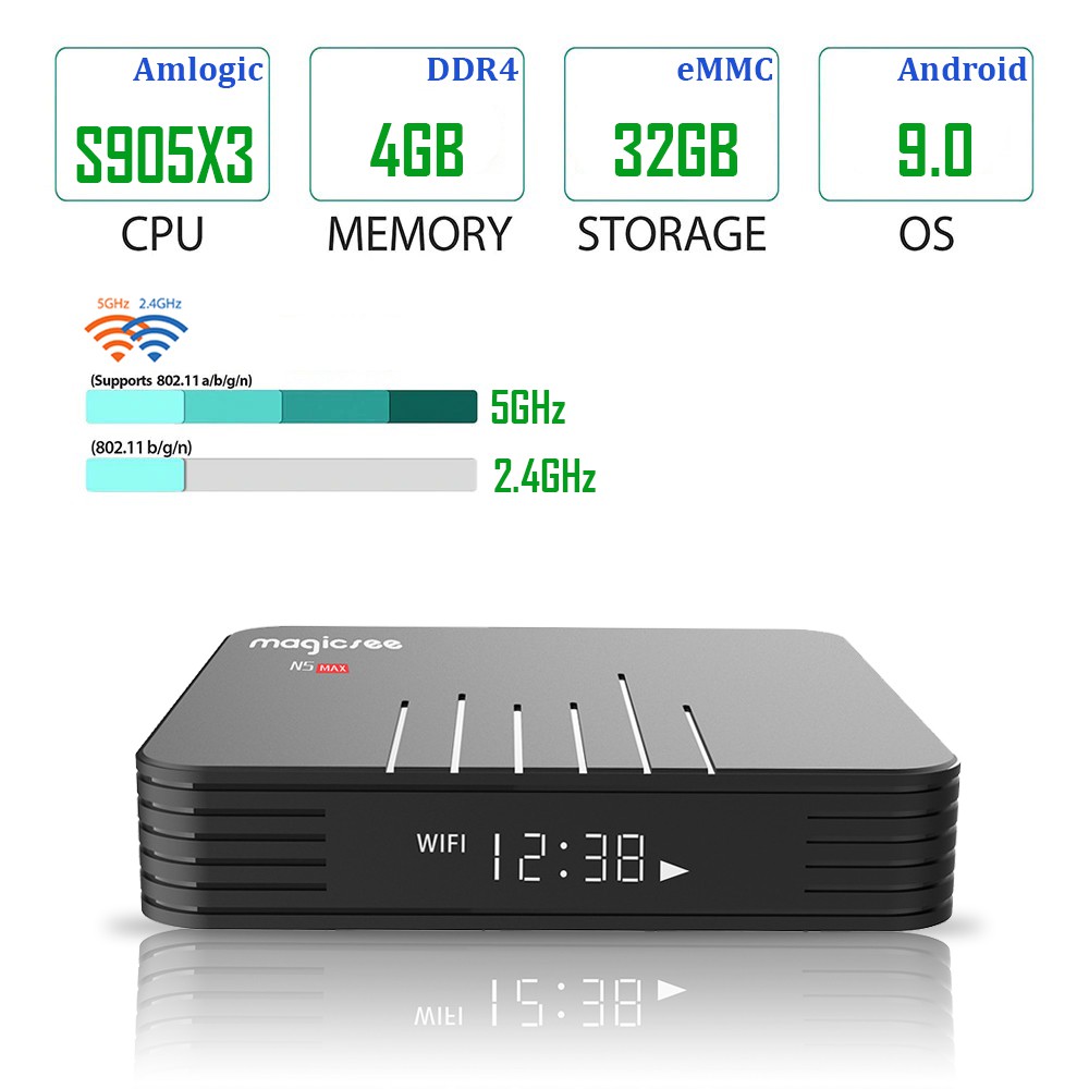 Giới thiệu [Mã 155ELSALE giảm 7% đơn 300K] Android Tivi Box Magicsee N5 Max Chip S905X3 Ram 4GB Bộ nhớ 32GB Phiên Bản New