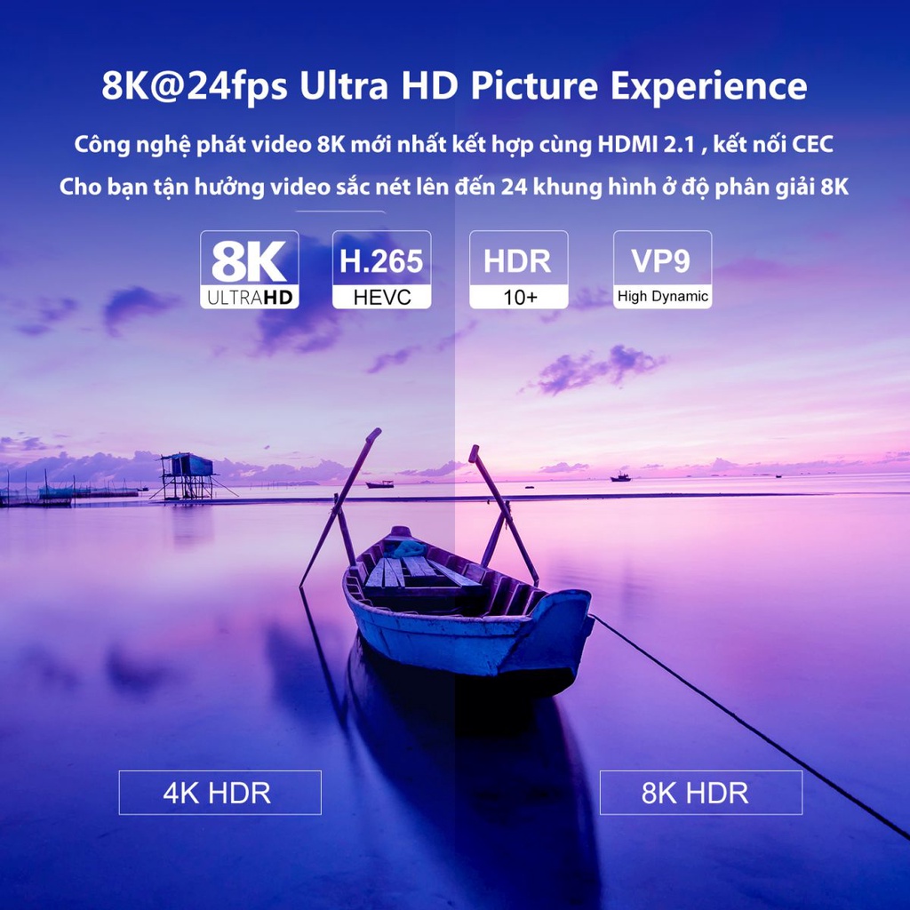 - Hiệu năng mạnh mẽ đến từ vi xử lý S905W4 giúp thiết bị có khả năng chiến mượt các video chuẩn 4K 60FPS, Ram 2GB đi cùng bộ nhớ 16GB là dư sức để người dùng giải trí mượt mà nhất.