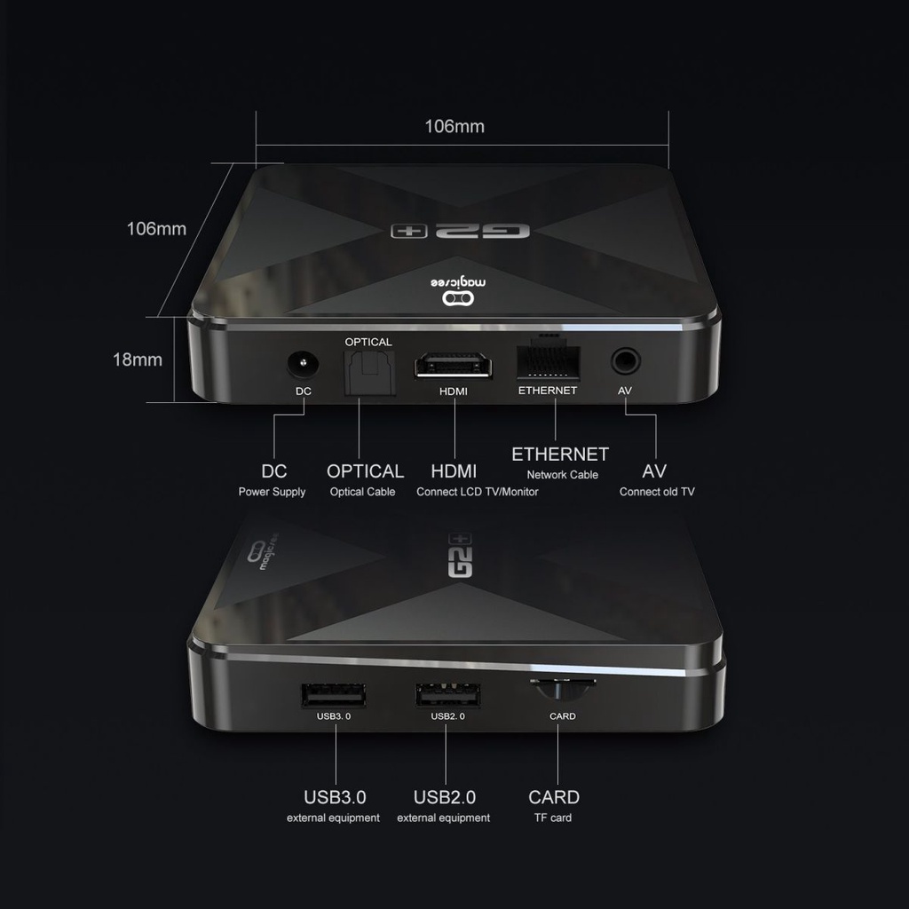 - G2 Plus là Android TV Box tiên phong sử dụng vi xử lý S905W4 mới và mạnh mẽ đến từ thương hiệu chip danh tiếng Amlogic. Hiệu năng mạnh mẽ hơn nhiều so với thế hệ chip phổ biến S905W trên các Android TV Box đã làm mưa làm gió tại thị trường Việt Nam như TX3 mini, X96 mini, MyTV Net...