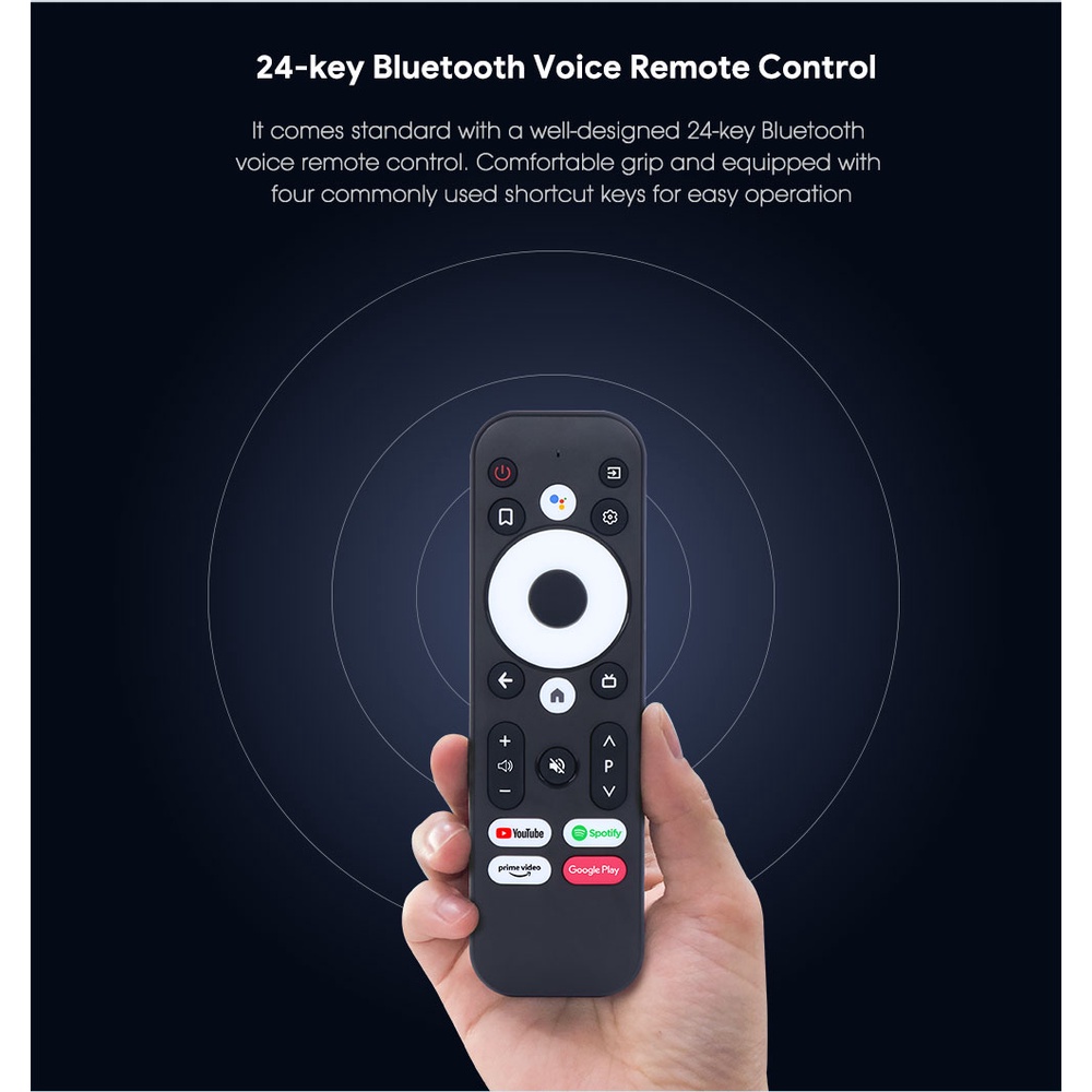 – Cấu mạnh mẽ với bộ xử lý chip Amlogic S905Y4, mới nhất hỗ trợ đầy đủ video 4K UHD cao cấp, CPU 64bit Cortex A35 Quad Core, xử lý đồ họa 4K mạnh mẽ.