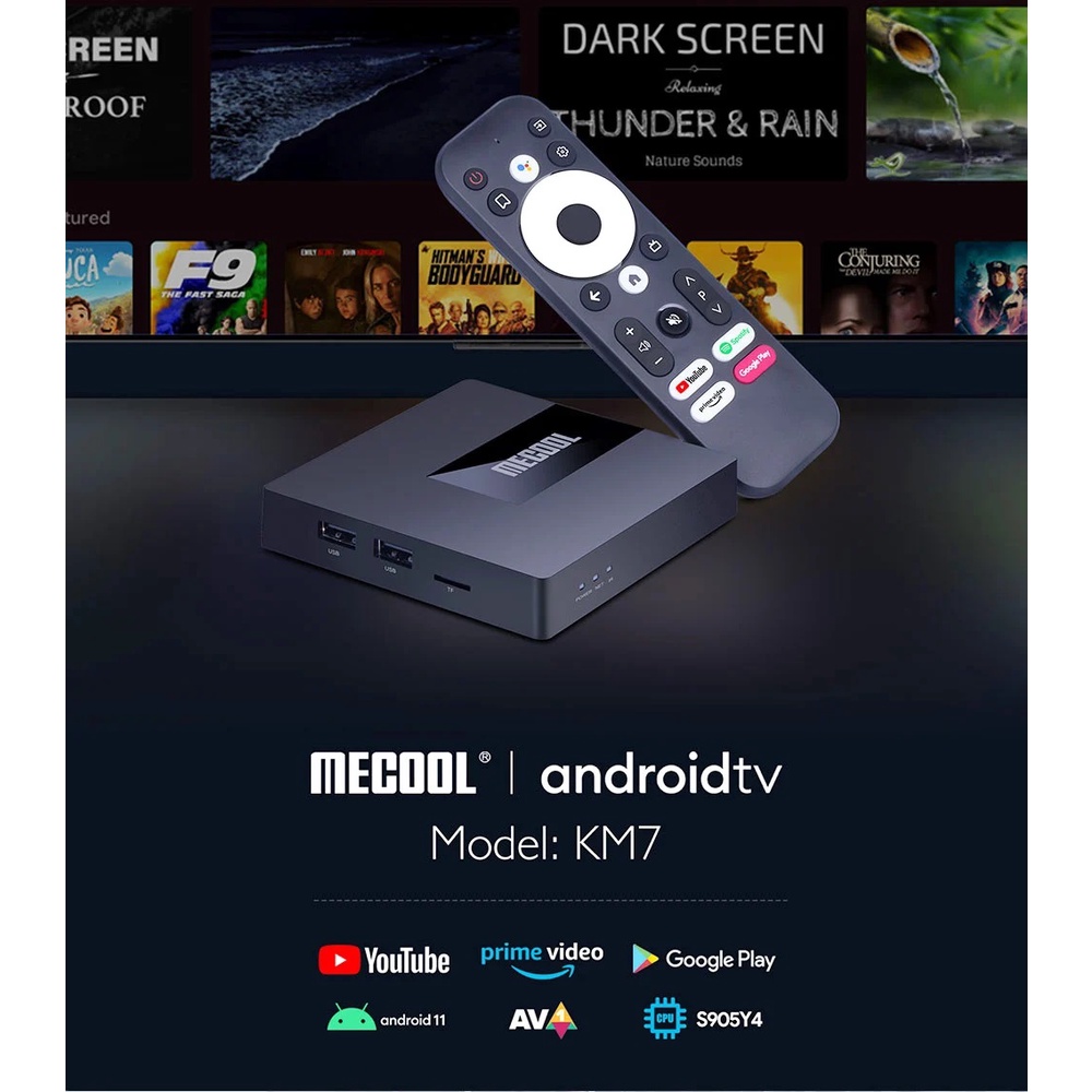 Giới thiệu Android TV Box Mecool KM7, CPU S905Y4, Ram 2GB, Rom 16GB, Remote voice, Android TV 11 chính chủ Google, Wifi 2.4/5GHz