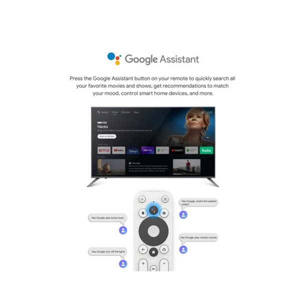 - Được trang bị kèm một điều khiển giọng nói kết nối qua bluetooth, hoạt động rất mượt mà với google assistant (điều khiển và ra lệnh bằng giọng nói).