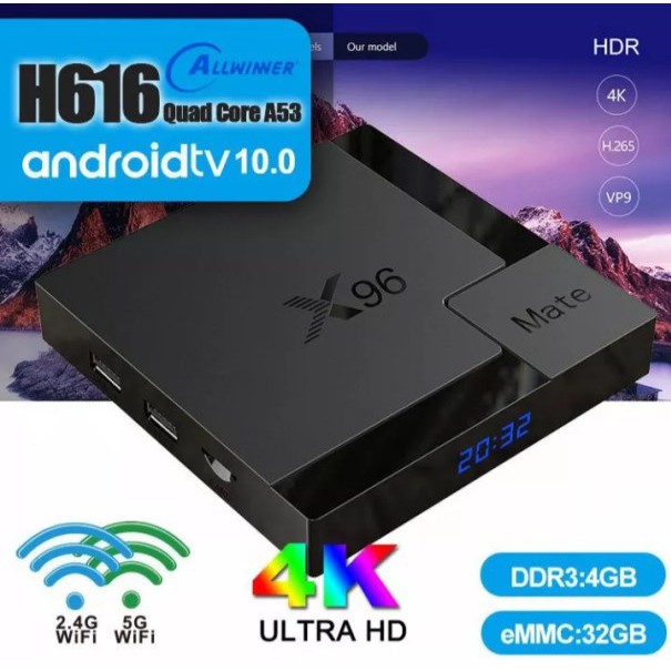 Android TV Box X96 Mate, Android 10.0, Ram 4GB, Bộ nhớ 32GB, Wifi 2.4Ghz/5.0Ghz, Bluetooth 5.0➢ GIỚI THIỆU SẢN PHẨM: