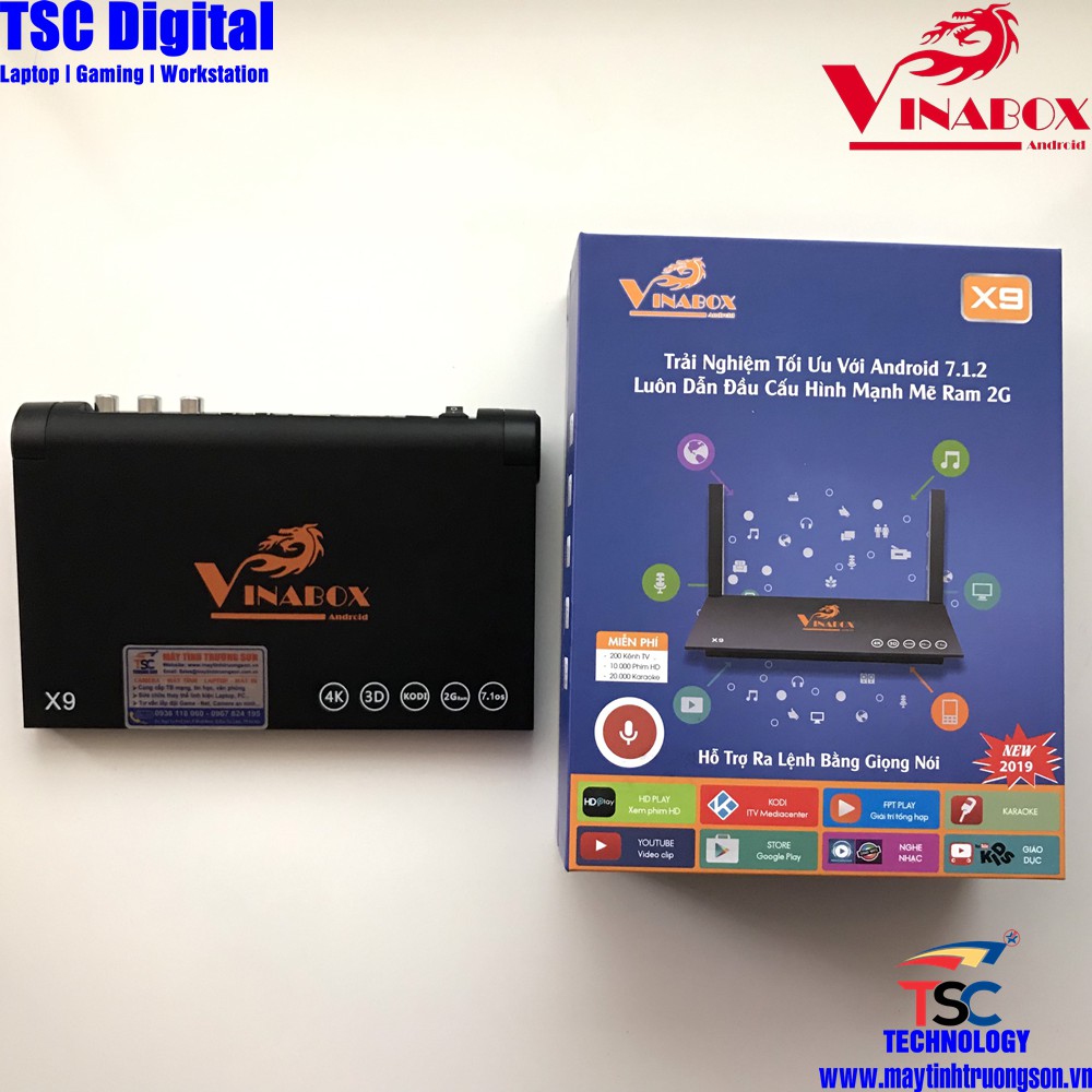 - Android box VINABOX X9 phiên bản 2G bộ nhớ trong 16G, Chip xử lý Lõi Tứ RK3229 ~ 1.5Ghz mạnh mẽ giúp trải nghiệm mọi tính năng online mượt mà. Đặc biệt sản phẩm chính hãng miễn phí 200 kênh tv 10.000 phim hd 20.000 bài hát karaok, được phân phối và bảo hành 12 tháng bởi VINAGO.