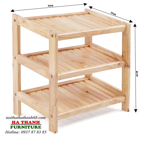 Kệ để giày dép gỗ 3 tầng rộng 45cm – sản phẩm được làm từ 100% gỗ cao su tự nhiên. Với vân gỗ rất đẹp, thớ gỗ mịn màng, chất gỗ cứng nên có khả năng kháng mối mọt rất tốt. Bạn có thể hoàn toàn yên tâm sử dụng kệ dép gỗ cho gia đình, văn phòng, trường học...1. THÔNG SỐ SẢN PHẨM: