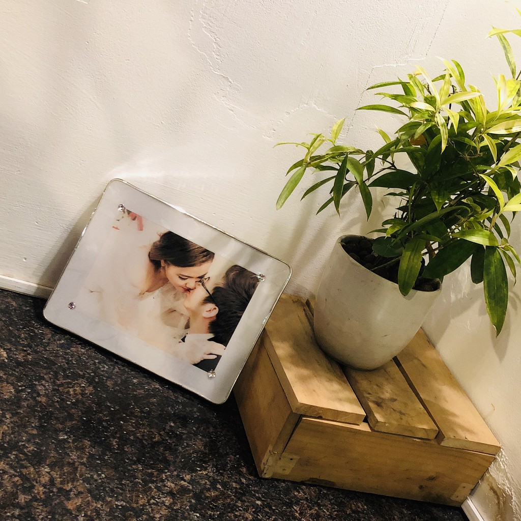 👌 Ảnh được ép sau mặt kính pha lê dày trong suốt, có độ bóng cao và sáng. Viền ảnh được bọc nhôm trắng cao cấp, dùng nhựa cứng đỡ phần lưng tạo sự cứng cáp và sang trọng trong khung pha lê.