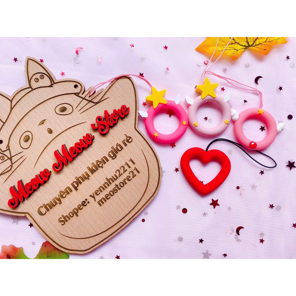 🌸Hình dáng: móc hình tròn, có dây đeo dùng để luồng qua lỗ nhỏ trển ốp lưng.