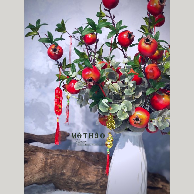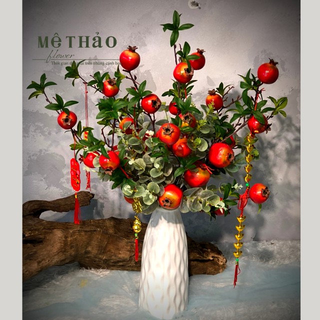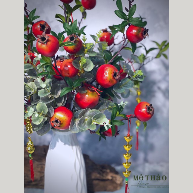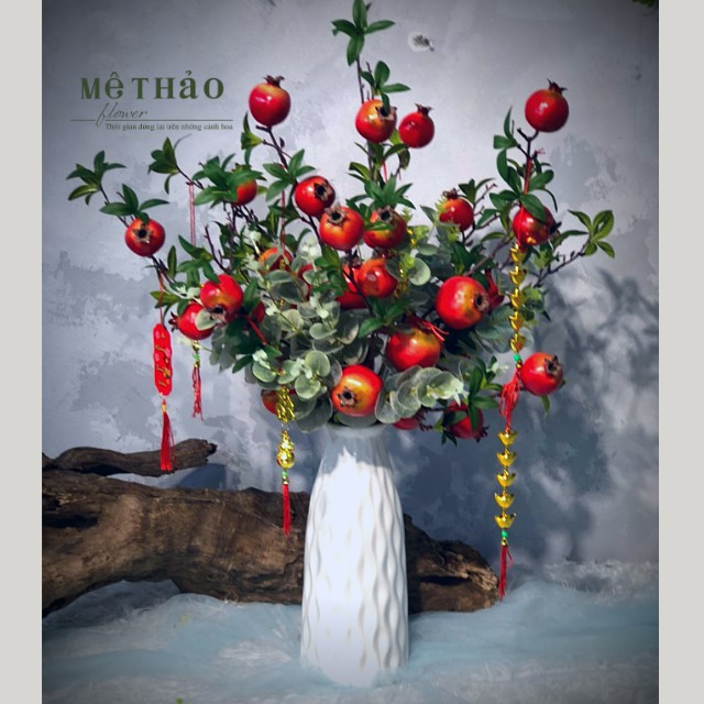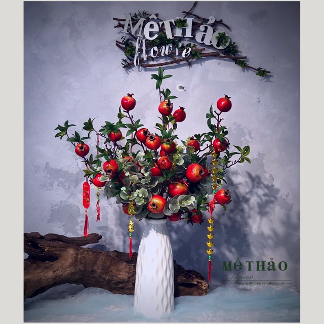 (Ảnh shop chụp) Bình Lựu Giả Trang Trí Nhà Cửa, Decor Phòng Khách Chất Liệu Lụa Cao Cấp Mê Thảo Flower