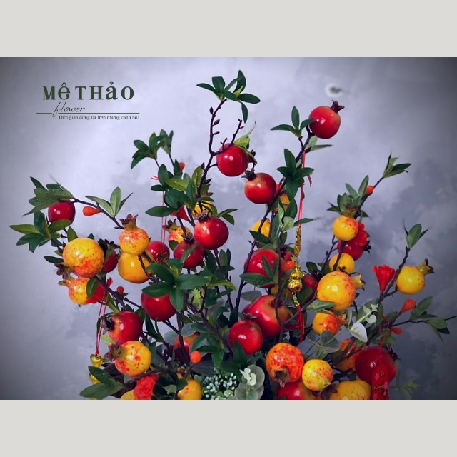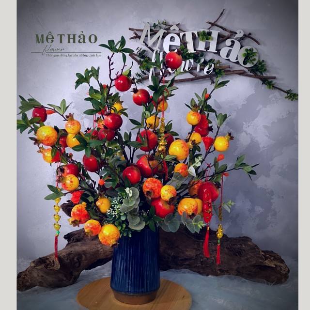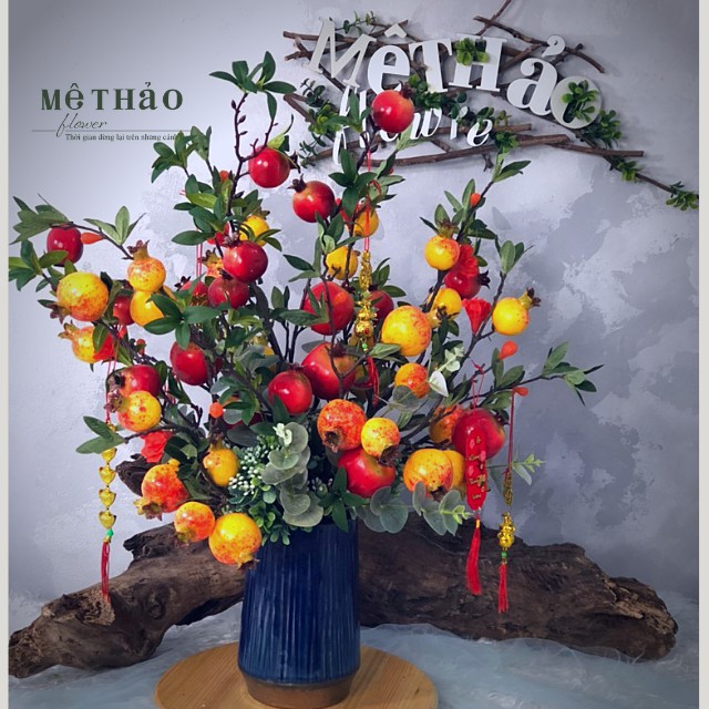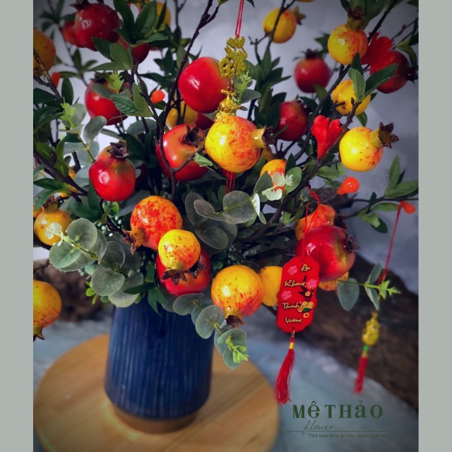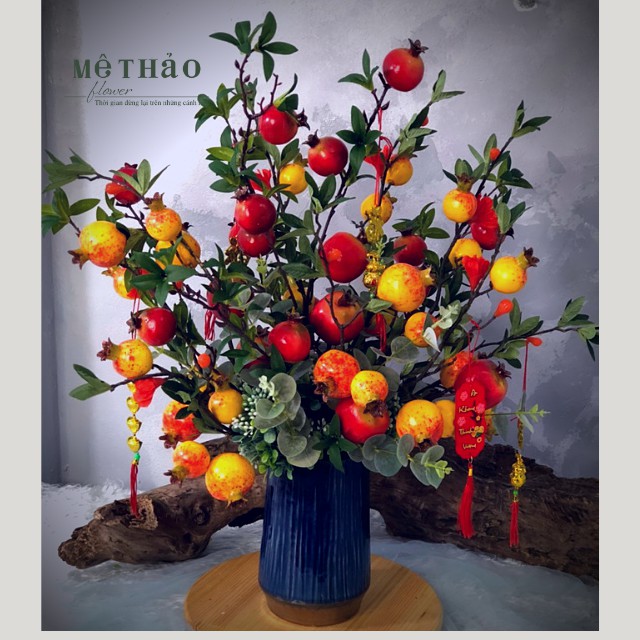 (Ảnh shop chụp) Bình Lựu Giả Trang Trí Nhà Cửa, Decor Phòng Khách Chất Liệu Lụa Cao Cấp Mê Thảo Flower