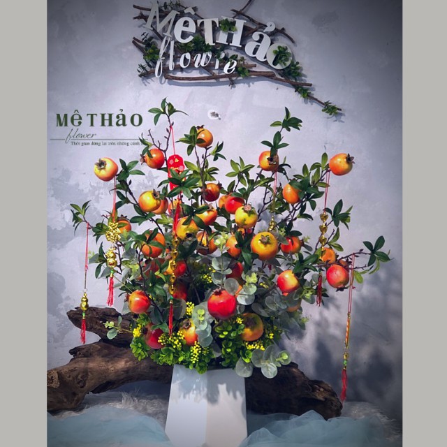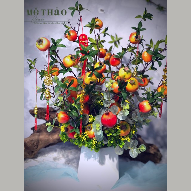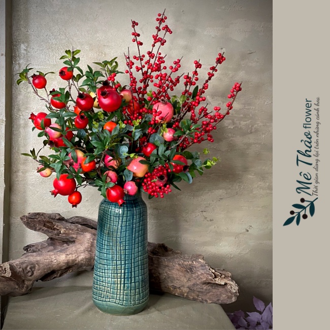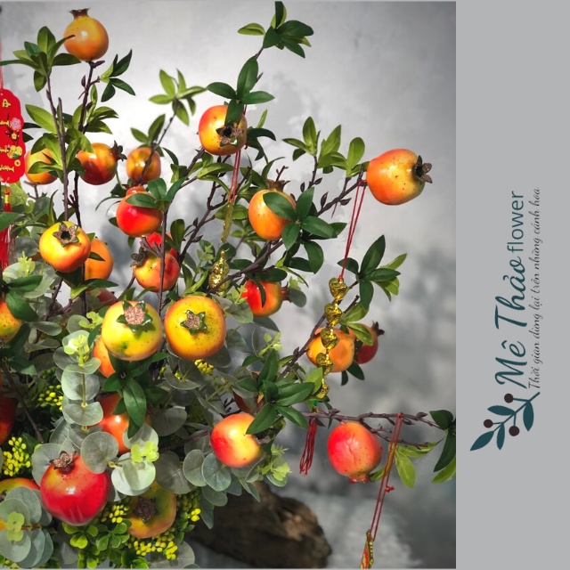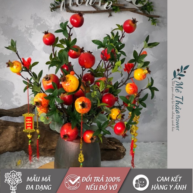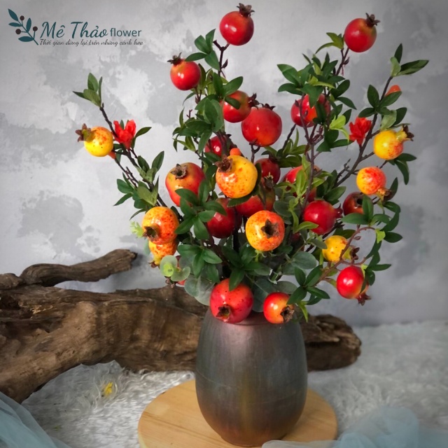 (Ảnh shop chụp) Bình Lựu Giả Trang Trí Nhà Cửa, Decor Phòng Khách Chất Liệu Lụa Cao Cấp Mê Thảo Flower