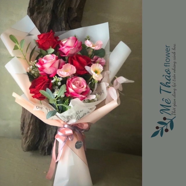 [Ảnh shop chụp] Bó Hoa Hồng Giả Mix Chất Liệu Lụa Dùng Làm Quà Tặng, Decor Trang Trí Shop Mê Thảo Flower