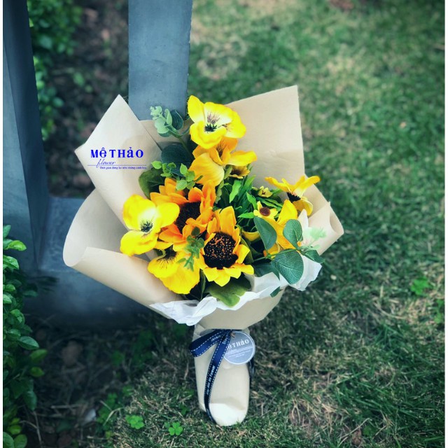 CÓ ẢNH THẬT VÀ VIDEO THỰC TẾBó hoa hướng dương mix được kết từ hoa vải hoa lụa cao cấp nhìn rất thật và sang trọng Sử dụng trang trí tiệc cưới, nhà ở, văn phòng công ty, cửa hàng, quán cafe, shop thời trang… Có thể dùng làm quà tặng rất có ý nghĩa.