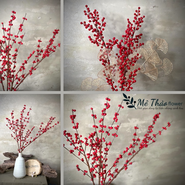 Nhà cửa & Đời sống > Trang trí nhà cửa > Hoa trang trí || (Ảnh Shop Chụp) Cành Đào Đông Đỏ Chất Liệu Cao Cấp Decor Nhà Cửa, Phòng Làm Việc, Trang Trí Tết Của Mê Thảo FLowerCòn hàng
