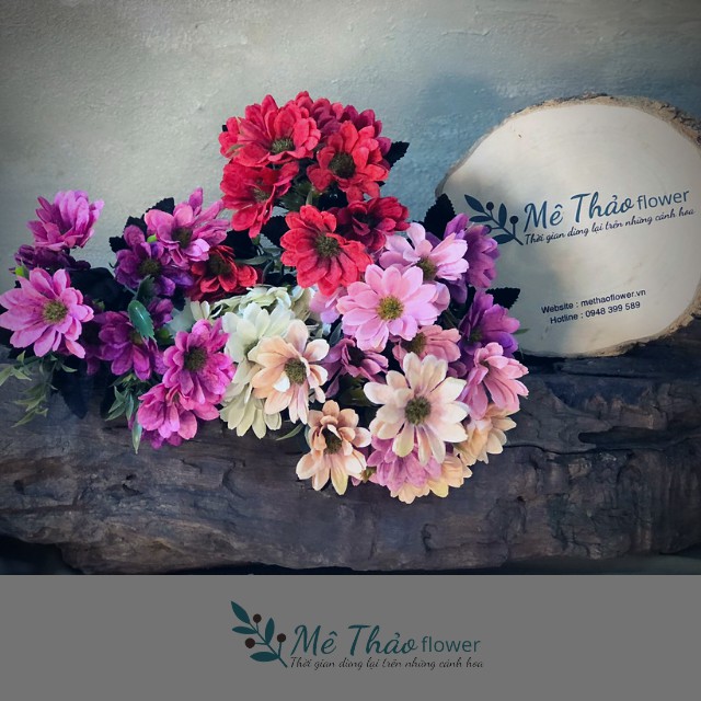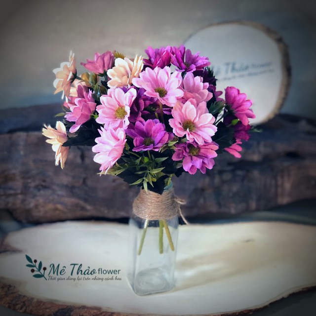 (Ảnh Shop Chụp) Cành Hoa Cúc Giả Chất Liệu Cao Cấp Cắm Lọ Hoa Trang Trí Nhà Cửa, Phòng Khách Mê Thảo Flower
