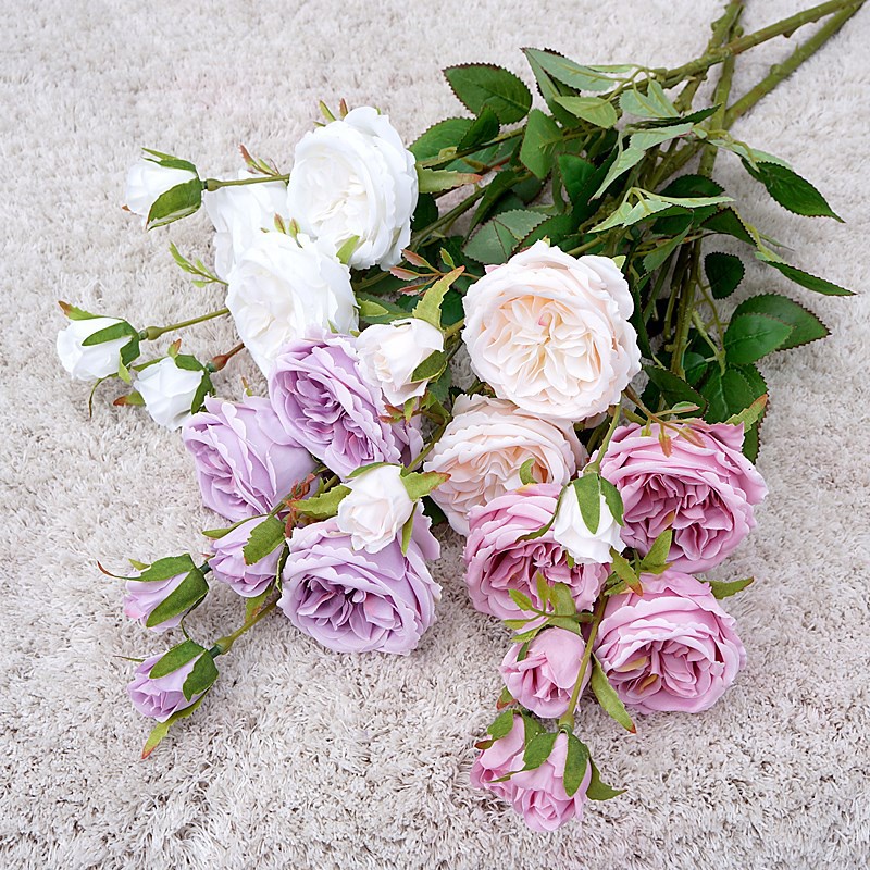 [ Ảnh Shop Chụp] Cành Hoa Hồng 3 Bông 3 Nụ Chất Liệu Lụa Cao Cấp Decor Nhà Cửa, Trang Trí Phòng Khách Của Me Thảo Flower