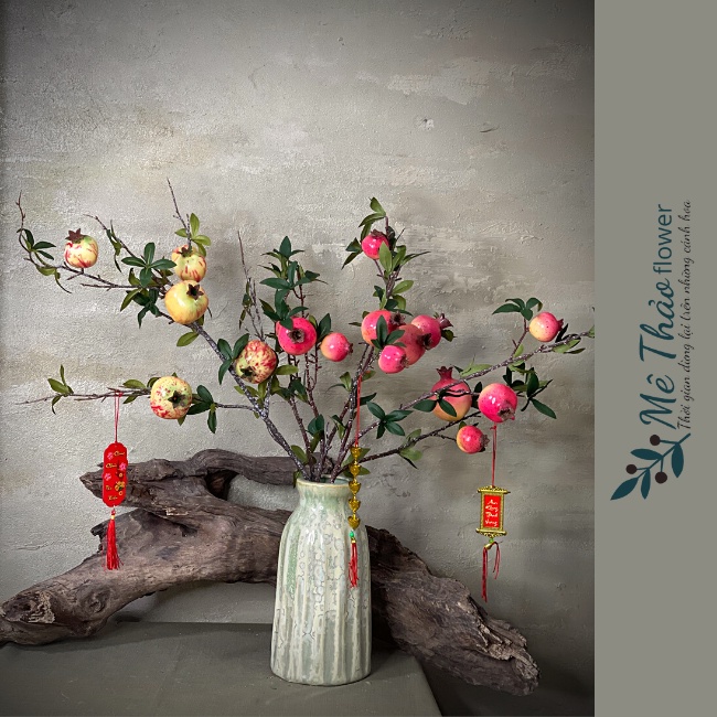 Cành Lựu Cao Cấp Trang Trí Nhà Cửa Cắm Bình Và Lọ Hoa Decor Sang TrọngCành lựu đỏ biểu tượng cho sự may mắn, sung túc được các gia đình yêu thích, trưng trong nhà. Nó cũng thể hiện mong muốn sum vầy, đông con nhiêu cháu của ông cha ta xưa. Một bình lựu đỏ vừa đẹp vừa nhiều ý nghĩa sẽ làm nổi bật không gian của bạn!