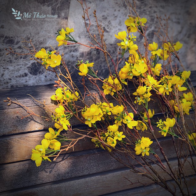 (Ảnh shop chụp) Cành Mai Mĩ Giả Trang Trí Nhà Tết, Decor Phòng Khách Chất Liệu Lụa Cao Cấp Mê Thảo Flower