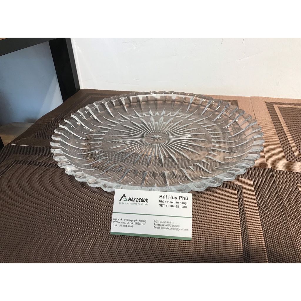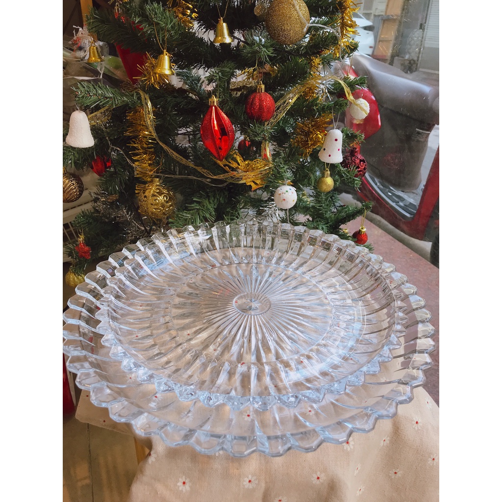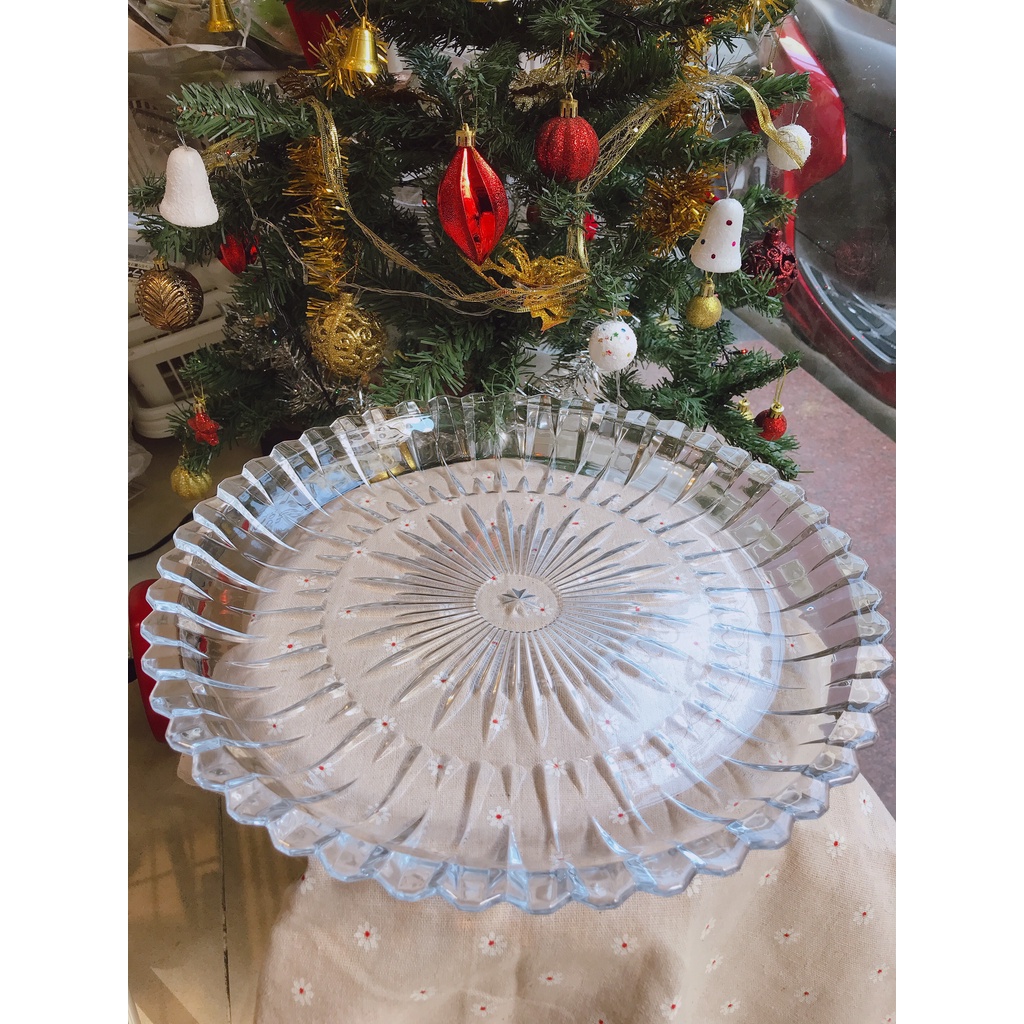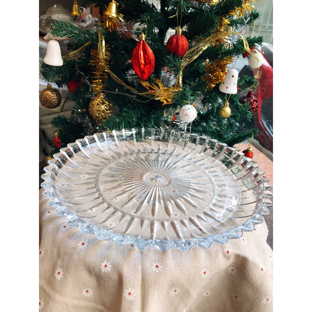 Đĩa Thuỷ Tinh Trong Suốt Cao Cấp 30cm Khay Đựng Hoa Quả Bánh Kẹo Tết