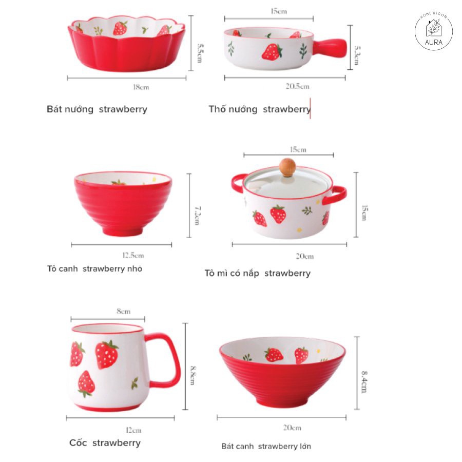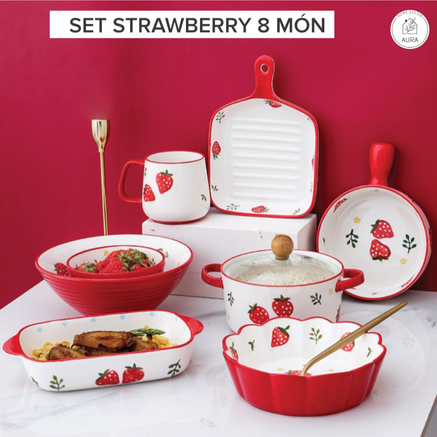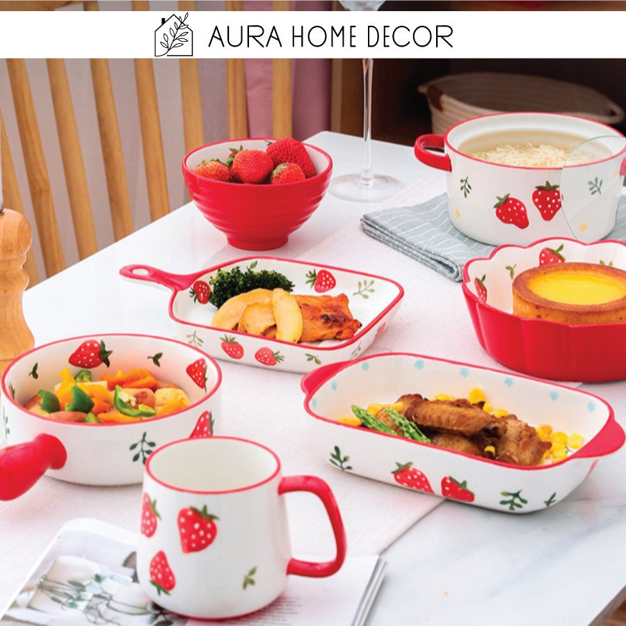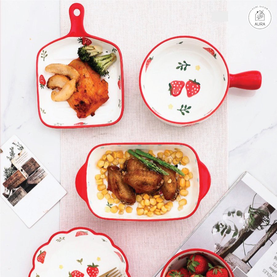 [Set bát đĩa, thố nướng strawberry]Thoải mái mua lẻ, hay mua cả set đồ ăn strawberry cực xinh là ngọt ngào.
