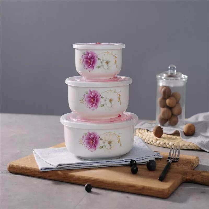 Nhà cửa & Đời sống > Bộ đồ bàn ăn > Tô || # ảnh thật # Bộ 3 bát sứ có nắp hút chân không , sứ sạch an toànCòn hàng